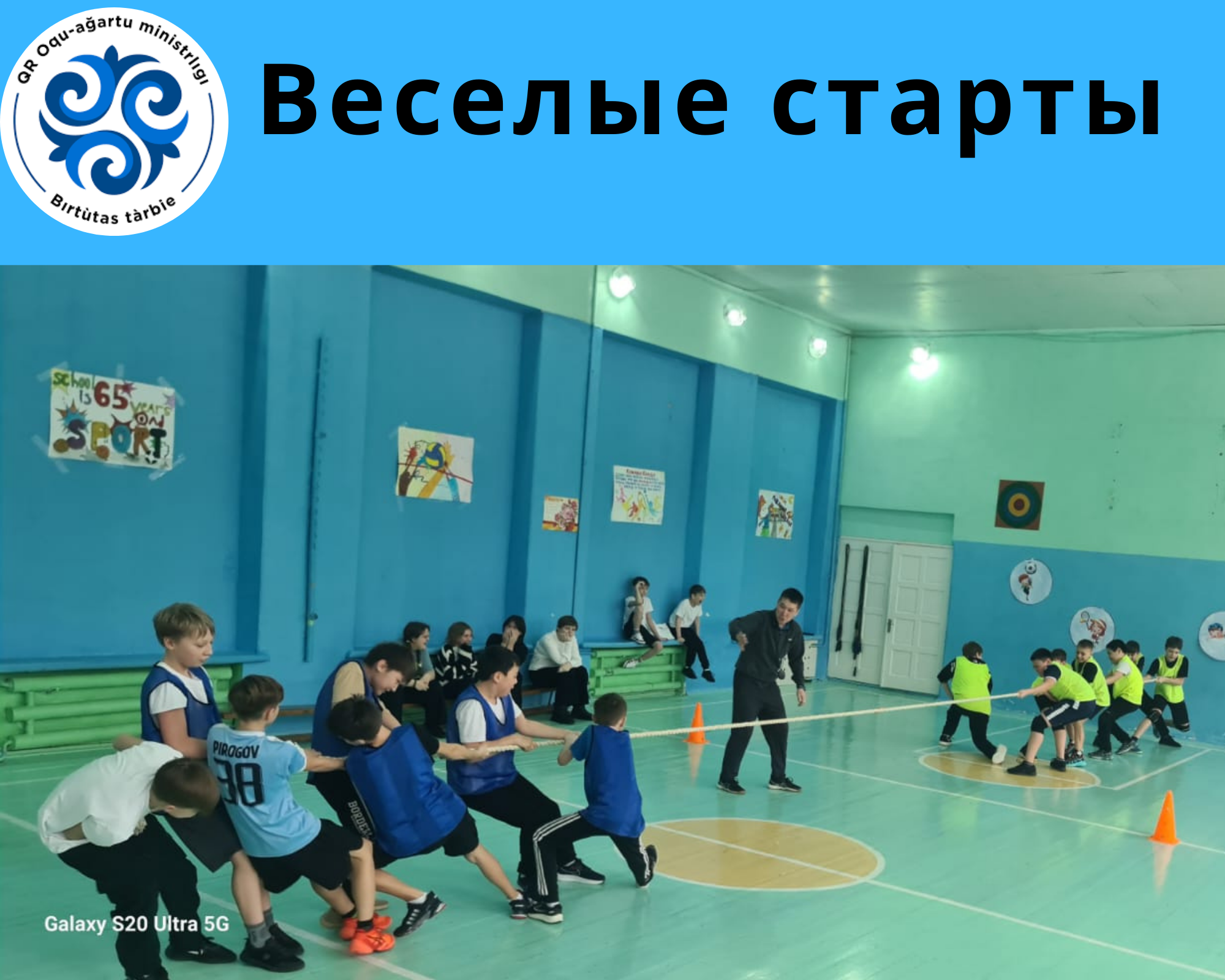 В рамках месячника военно-патриотического воспитания с учащимися 6 "В" и 6 "Д" классов учителями физической культуры Кимадиевым Ерланом Каиржановичем, и Насиловым Азаматом Карибаевичем проведены весёлые старты.